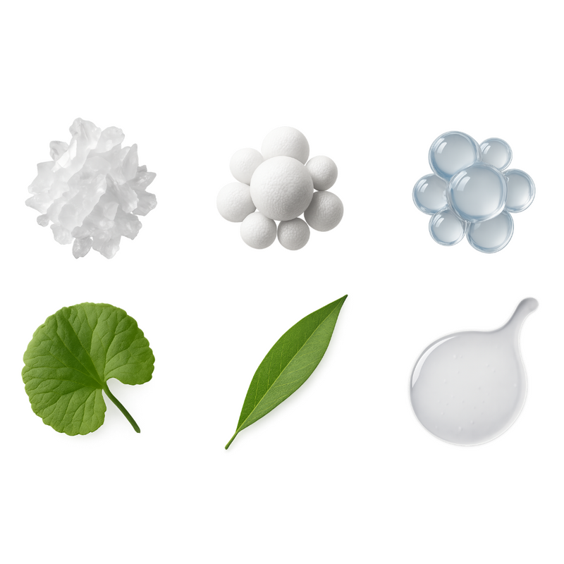 Strip & Square Patches with Salicylic Acid, Centella Asiatica, Niacinamide, and Low-Molecular Hyaluronic Acid target clusters and larger breakouts. They clear clogged pores, calm redness, hydrate deeply, and strengthen the skin barrier while covering multiple spots at once.