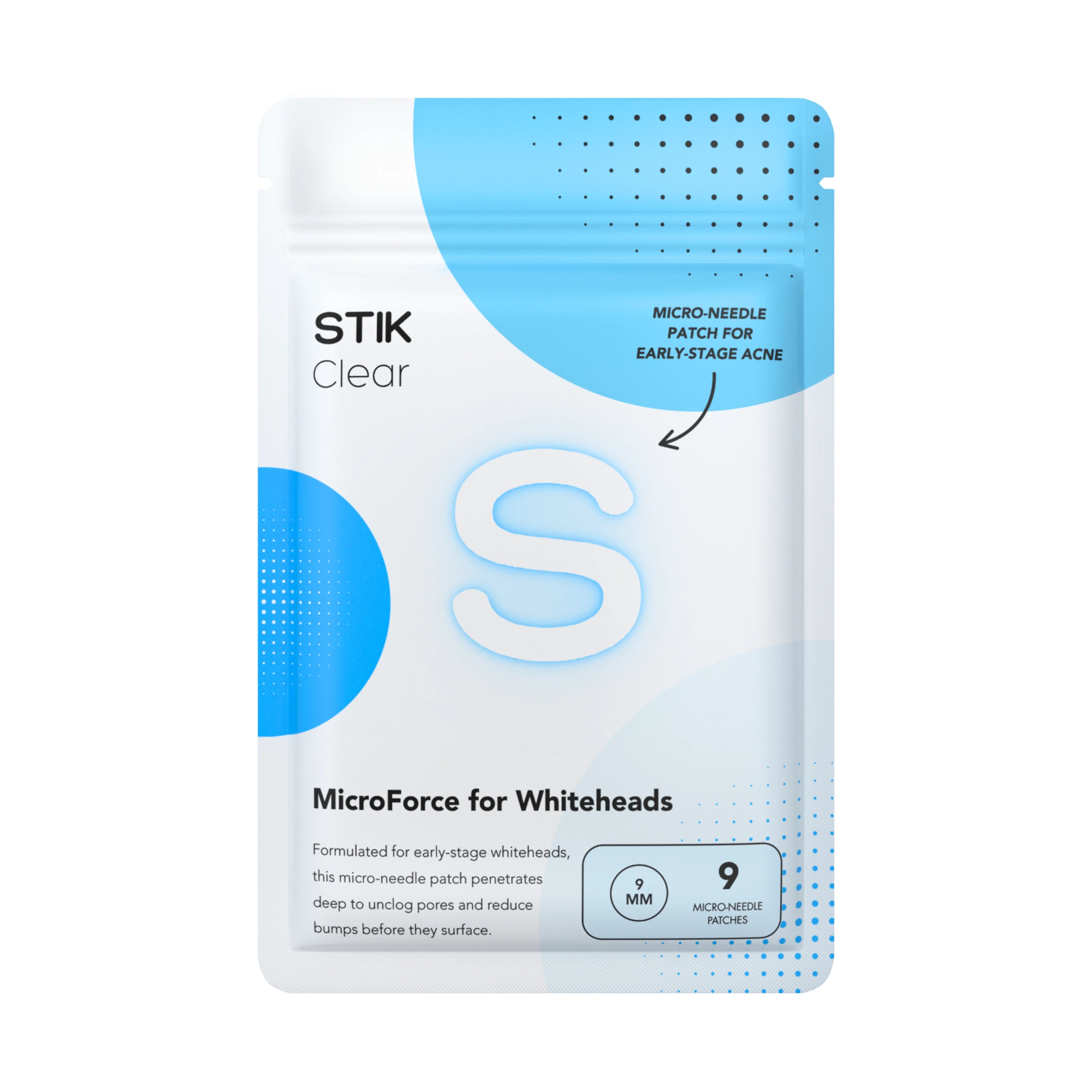 MicroForce for Whiteheads is STIK’s advanced micro-needle technology designed to deliver active ingredients directly into the skin, targeting blind pimples and early-stage acne more effectively than surface products. The tiny, dissolving tips are painless yet powerful, working beneath the surface to calm and shrink breakouts before they worsen.